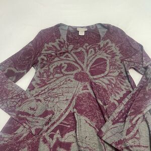 Soft Surroundings Purple Grey Floral Paisley Lagenlook Sweater Size Small
