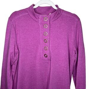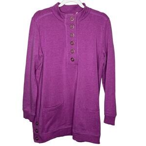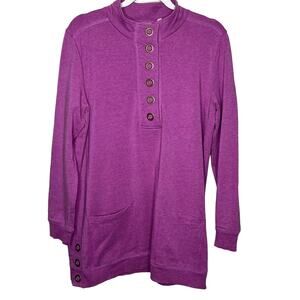 Soft Surroundings Purple Pullover Tunic Sweater snap closure details Size Medium