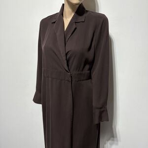 Soft Surroundings Quintessa Maxi Wrap Dress Pockets Size M Brown Long Sleeve
