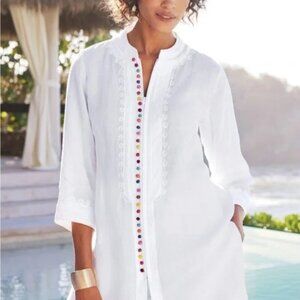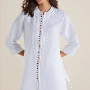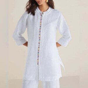 Soft Surroundings Rainbow Desert Linen Tunic White Embroidered Zip Up XS