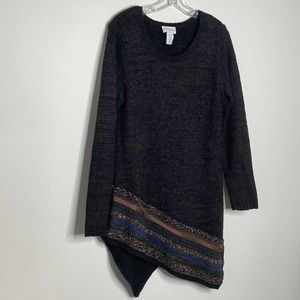 Soft Surroundings Raku Tunic Asymmetrical Hem Striped Lagenlook Medium 25188