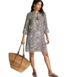 Soft Surroundings Raven Shift Dress Wood Buttons Ecru Black Print Sz M NWT