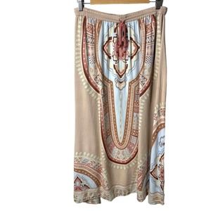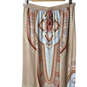 Soft Surroundings Rayon Boho Print Multicolor Drawstring Midi Skirt, Medium