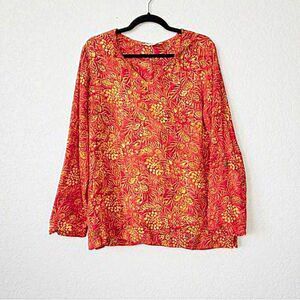 Soft Surroundings Red Becoming Batik Hooded Tunic Top Size Petite Small