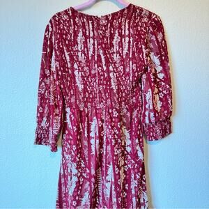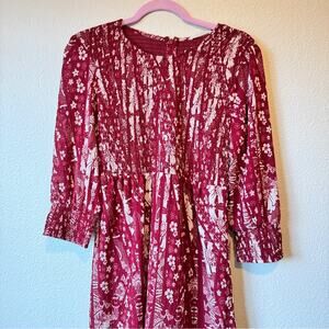 Soft Surroundings Red Ditsy Floral Smocked Midi Dress Womens 4 Tiered Fall