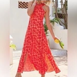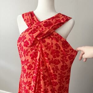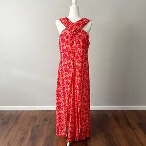 Soft Surroundings Red Floral Criss Cross Halter Maxi Dress women's size large