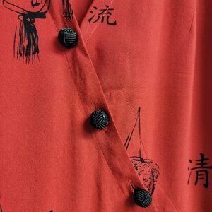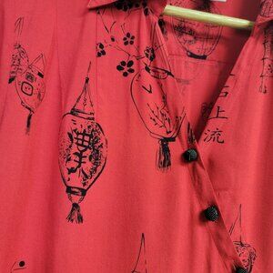 Soft Surroundings Red Pagoda Wrap Top Size M Petite Assymetric Asian Lanterns