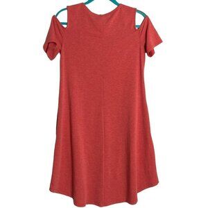 Soft Surroundings Red Pink Heathered Dress Cold Shoulder Pockets Knee length Sz Small