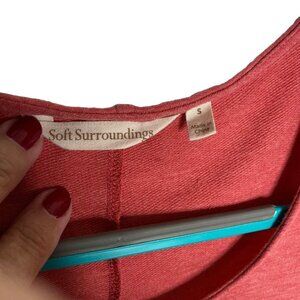 Soft Surroundings Red Pink Heathered Dress Cold Shoulder Pockets Summer Sz S