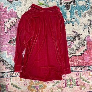 Soft Surroundings Red Velvet Button-Up Long Sleeve Tunic Shirt