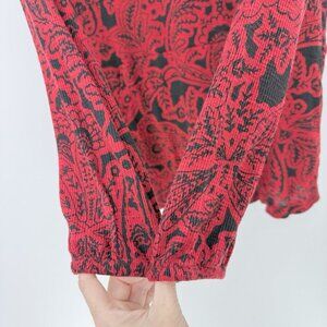 Soft Surroundings Red/Black Paisley Kendra Waffle Stretch Knit Top Sz M Boho