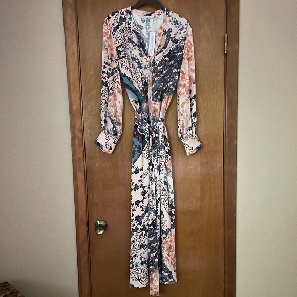 New with tags Soft Surroundings robe/gown, size M. Button fromt, belt, cuffs with button. 100% viscose, feels like silk. Pretty flowery pattern