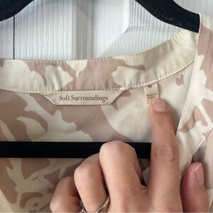 Soft Surroundings Roselyn Beige & Cream Floral Pockets High Low Top Tunic sz M.