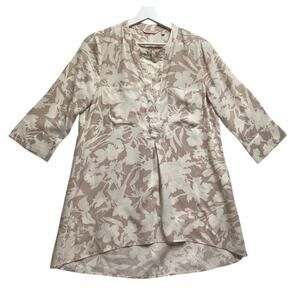 Soft Surroundings Roselyn Tunic Blouse Mandarin Collar Cream Tan Medium