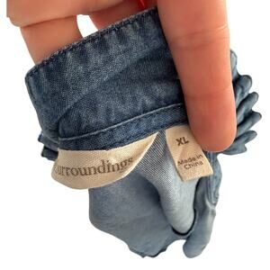 Soft Surroundings Ruffle Collar Chambray Blouse Size XL Button Down Top