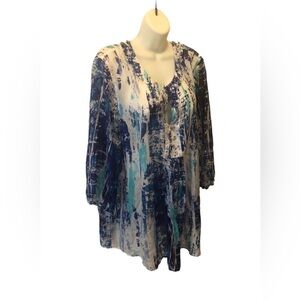 Soft Surroundings SILK Blue Water~Color Tunic Swim Cover ~Up Sz. 3X Beading