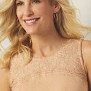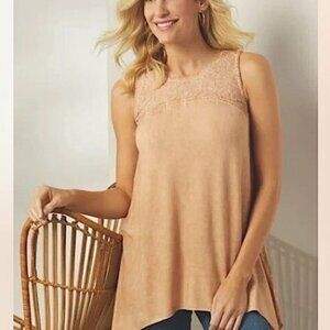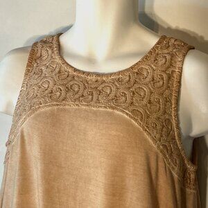 Soft Surroundings SZ M Pale Golden Washed Embroidered Tank Top Tunic