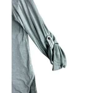 Soft Surroundings Sage Green Blouse Sz Large Silk Trim Roll Tab Sleeves Top