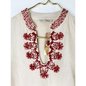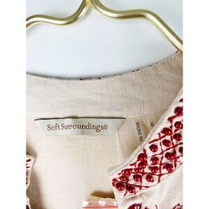 Soft Surroundings Sahara Tunic Red Beading Small $149 Linen Cotton NWT.