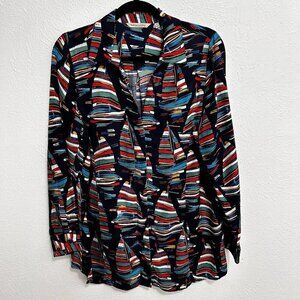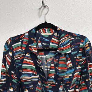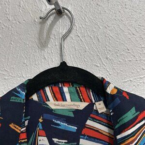 Soft Surroundings Sail Away Small Blouse Top Sailboats Colorful Artsy Button Up