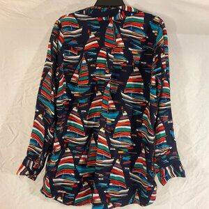 Soft Surroundings Sailboats Top, Tunic Button Down SZ M