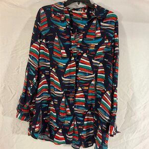 Multi-Color Nautical themed blouse, Tunic top/Relaxed Style fit, long sleeves, brightly colored. Perfect for summer cruises, parties, or to wear to work. Very good condition without any holes, stains, or tears. Let me know if you have any questions about this soft and lovely shirt.