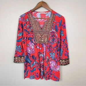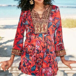 Soft Surroundings Samara Embellished Floral Tunic Top