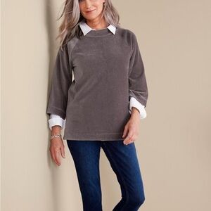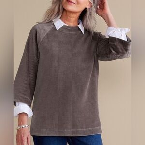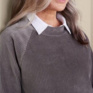 Soft Surroundings Samina Corduroy Pullover Sweatshirt Shoreline Grey Medium NEW