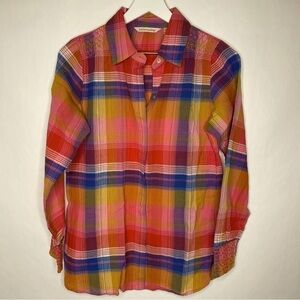 Soft Surroundings Sansone Multi Color Plaid Button Down Shirt