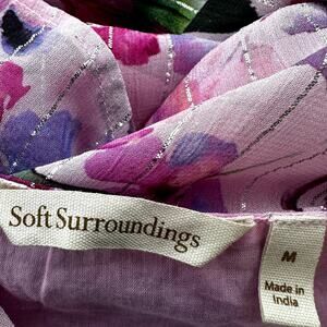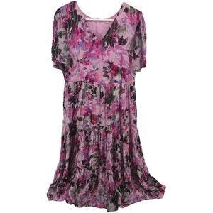 Soft Surroundings Santhia Dress Maxi Floral Pleated Tiered Flutter Sleeve Pink M