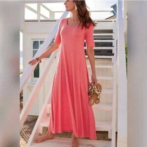 Soft Surroundings Santiago Maxi Dress Size Large Coral Reef Ribbed Vacation