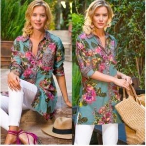 Soft Surroundings Scattered Floral Roses Tunic Blouse Shirt Top Size Medium