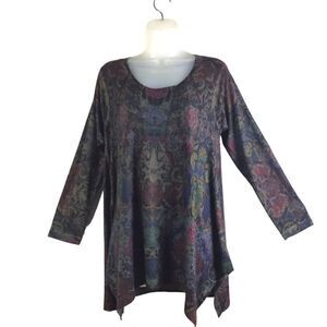 Soft Surroundings Scoop Neck High Low Asymmetric Hem Tunic Paisley Size Small