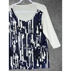 Soft Surroundings Scoop Neck Mesh Overlay Top Womens Size Large Stretch