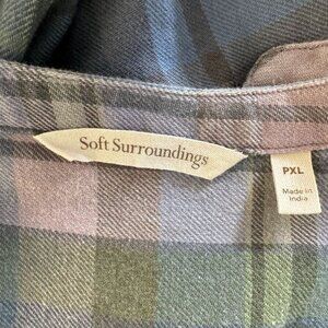 Soft Surroundings Serissa 1005 Cotton Flannel Green Lavender Blue Plaid Blouse Extra Large Petite