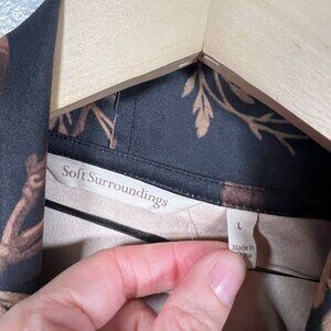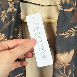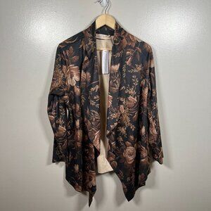 Soft Surroundings Shape Drape Faux Suede Jacket Floral Large Black Brown