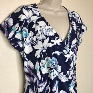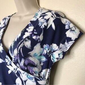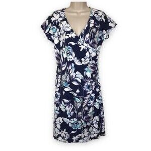 Soft Surroundings Shapely Anywhere Dress Faux Wrap Blue Floral Women Size Small