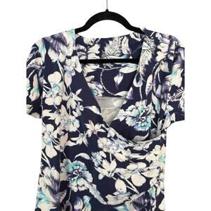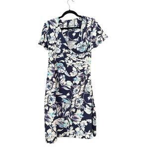 Soft Surroundings Dress PM Blue & White Floral Short Sleeve Cotton Spandex Soft