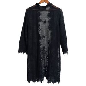 Soft Surroundings Lace Cardigan S Kimono Duster Black Witchy Goth Fairy Sheer