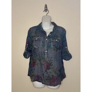 Soft Surroundings Sheer Floral Blouse Roll Tab Sleeves Size S GUC!!