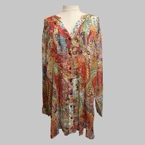 Soft Surroundings Sheer Paisley Floral Bohemian Resort Oversized Tunic Top 1X