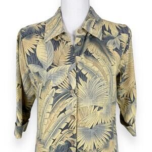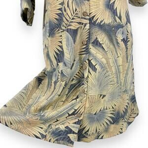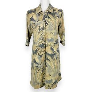 Soft Surroundings Shirt Dress Women's Size Small Petite Yellow Palm Print Linen