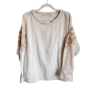 Soft Surroundings Shirt Large Pale Gray Charlotte Top Women's Embroidered NEW