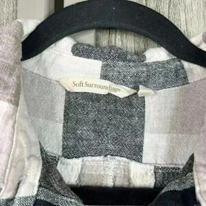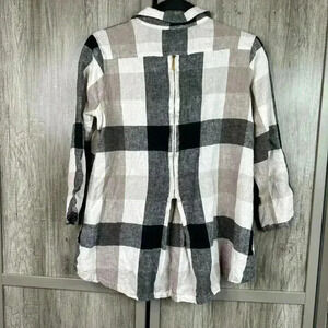 Soft Surroundings Shirt Small Plaid Back Zipper Linen Blend S