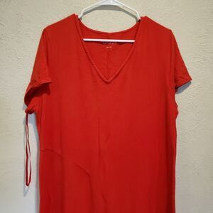 Soft Surroundings Shirt Womens 1X Red Short Sleeve Tunic Dress Asymmetrical Hem