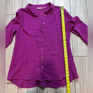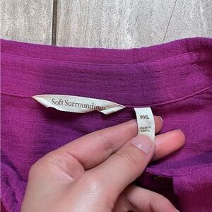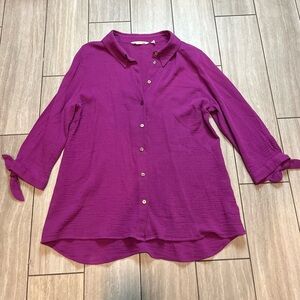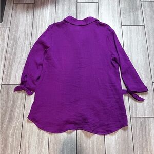 Soft Surroundings Shirt Womens Extra Large Purple Button Up Gauzy Tie 3/4 Sleeve