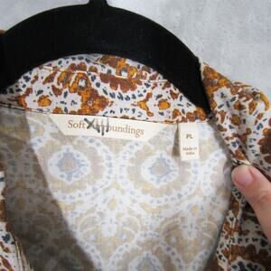 Soft Surroundings Shirt Womens Large Brown White Floral Button Up Boho