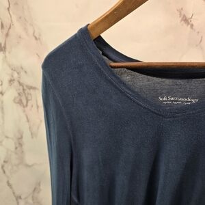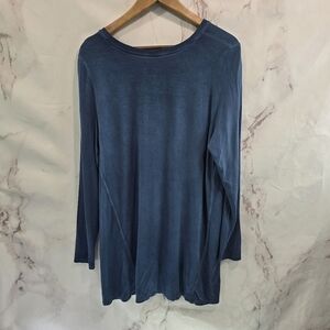 Soft Surroundings Shirt Womens Medium Blue Sublime Tunic Petite Tee T Long