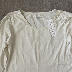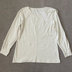 Soft Surroundings Shirt Womens Medium Cream Ecru Twisted Slit Sleeve Top NEW