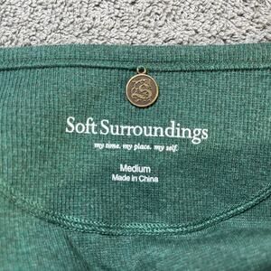 Soft Surroundings Shirt Womens Medium Green Waffle Knit Zip Long Sleeve Artsy